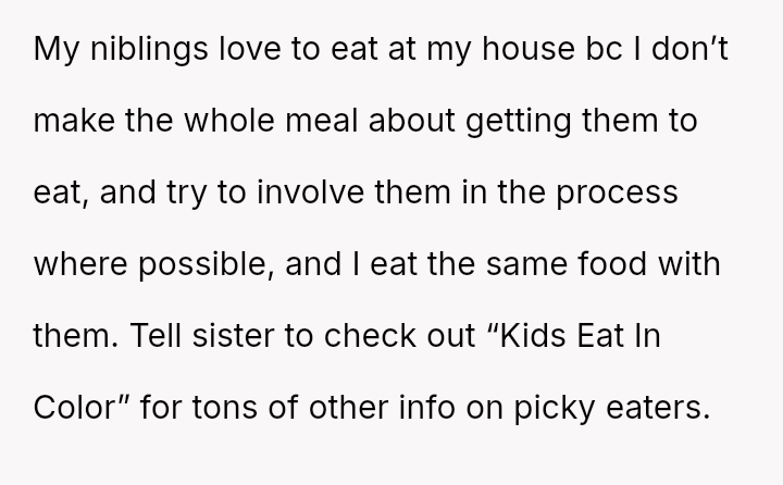 Is the OP being an unreasonable brother and uncle by refusing to provide daily, free, custom meal preparation for his sister's picky children, or is the sister demanding an unsustainable level of free labor under the guise of family support?