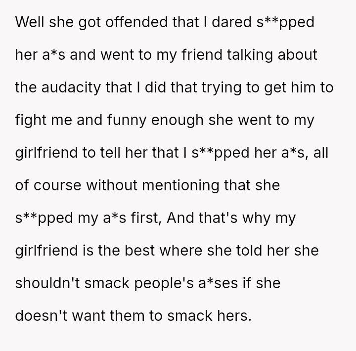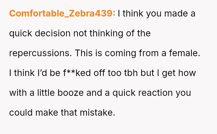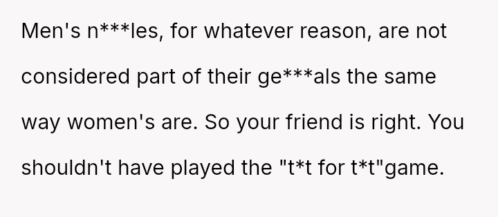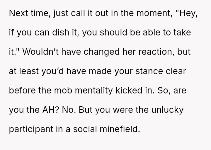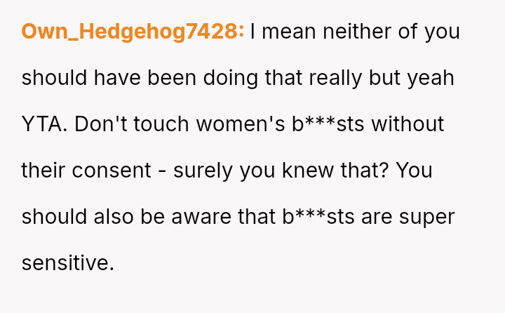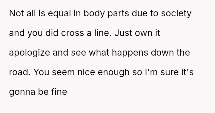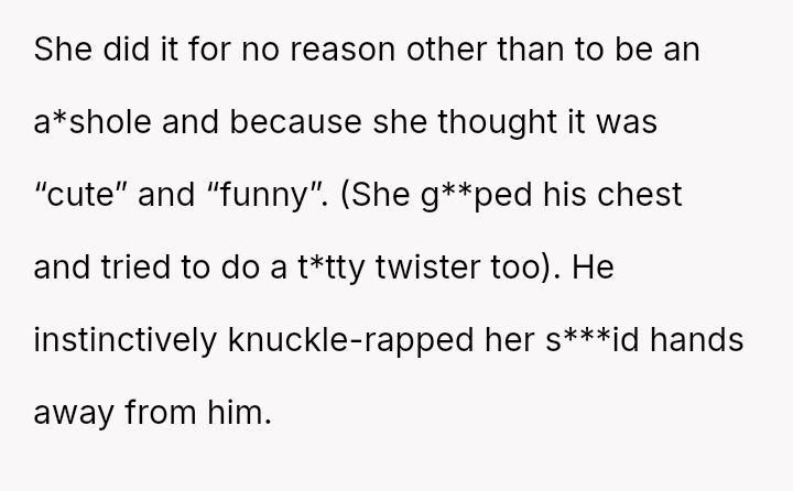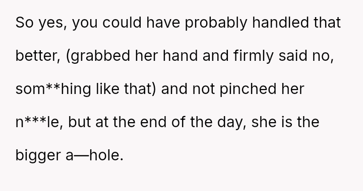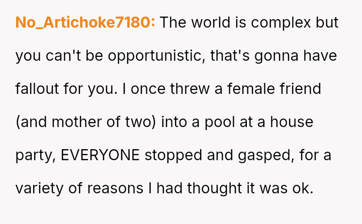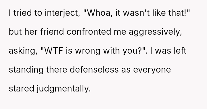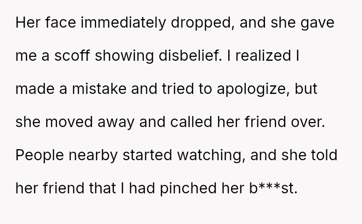This action directly conflicted with the other person's reaction and the social perception, leading to immediate public condemnation and the OP's hasty retreat from the situation.