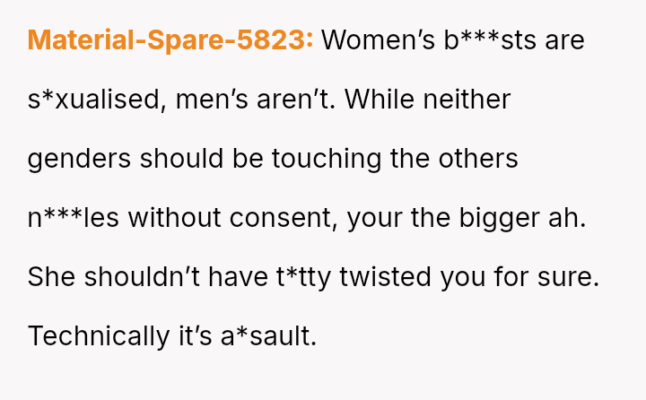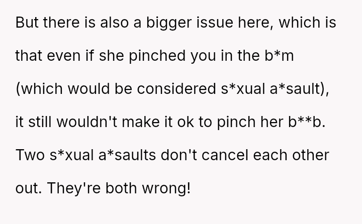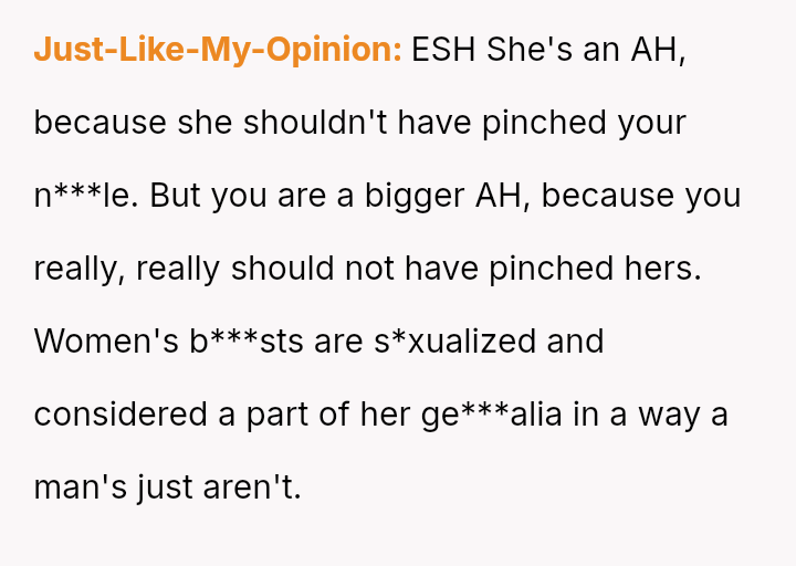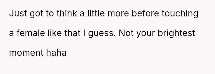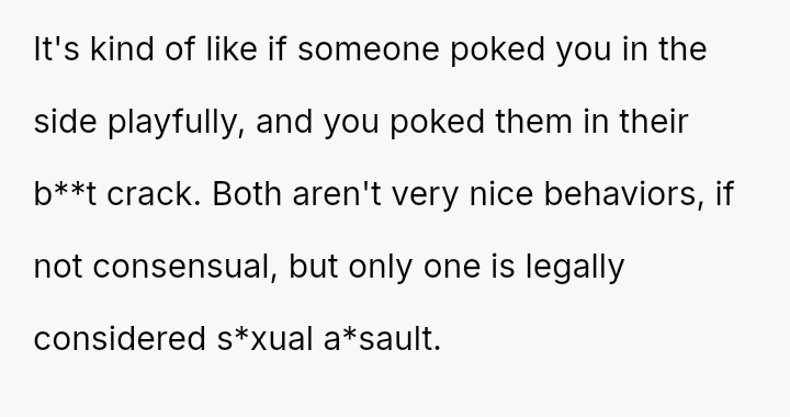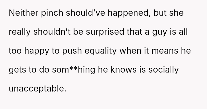 When playful boundaries are crossed in a social setting involving perceived mutual interest, does a reciprocal physical gesture const*tute equal retaliation, or does the power dynamic of gender and social context always dictate that some actions are inherently more serious than others?