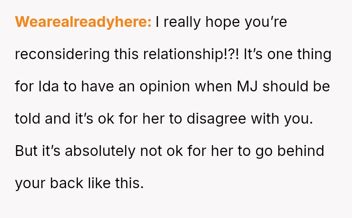 The OP es**blished himself as Mj's sole father figure out of necessity and love, creating a deep bond. Ida's immediate dismissal of this relationship dynamic has caused significant emotional distress and conflict.