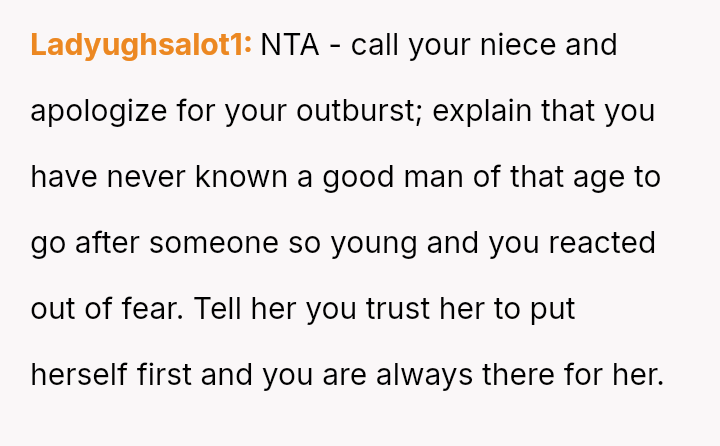 The poster is experiencing significant emotional conflict stemming from his protective feelings toward his young niece and the strong disapproval he feels regarding her engagement to a much older man.