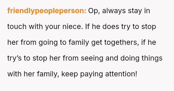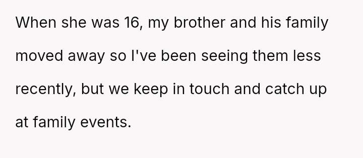 Although the brother's family moved away, they maintained contact, and the niece eventually mentioned having a boyfriend.
