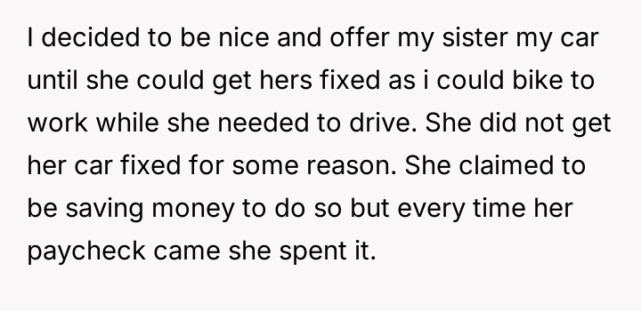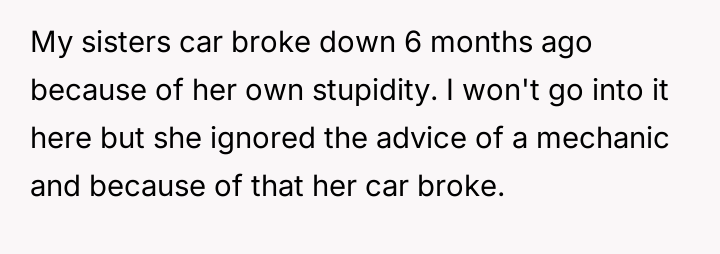 Six months ago, a simple act of kindness spiraled into a quiet battle of trust and boundaries. When her sister's car broke down due to her own neglect, he offered his own vehicle without hesitation, expecting only respect and responsibility in return. Instead, he found his generosity met with disregard, as she continued to misuse his car, ignoring both practical advice and the goodwill extended to her.