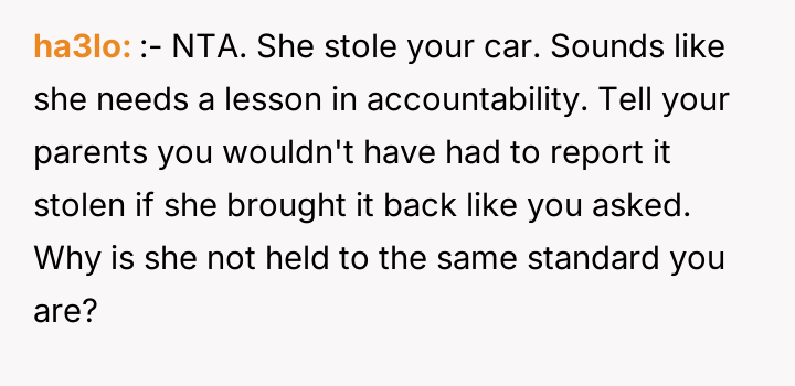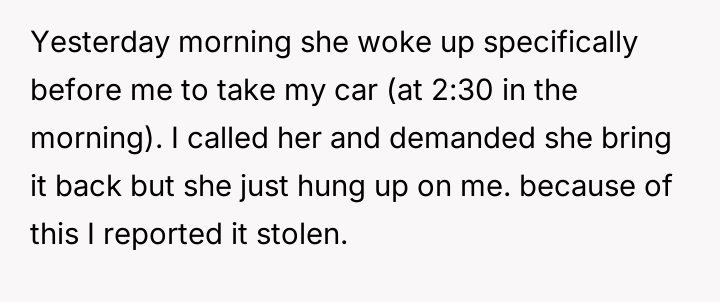 AITA for reporting my car stolen when my sister took it after I told her not to?