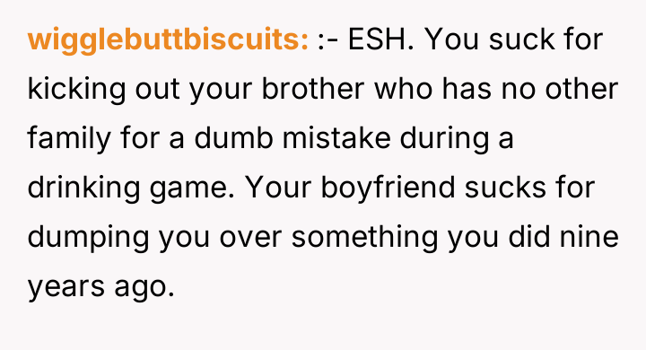 The debate centers on whether the OP's severe reaction—evicting their younger brother immediately after losing their fiancé due to a past mistake brought up unintentionally—is a justifiable defense mechanism against overwhelming hurt, or if it represents an unfair escalation against a sibling who apologized for a moment of drunken thoughtlessness. Where does the responsibility for destroying the relationship truly lie?
