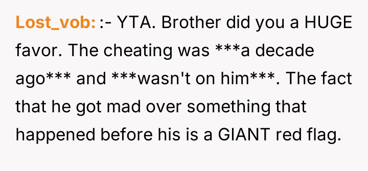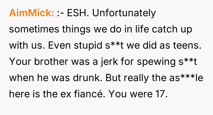 As renowned relationship expert Dr. John Gottman explains, “When we are hurt, we look for someone to blame.” In this scenario, the OP is grappling with the combined, catastrophic loss of a fiancé and the betrayal by a younger brother they felt responsible for. The brother’s statement, though motivated by the immaturity of a drinking game and knowledge of a past event, acted as a direct catalyst for the fiancé’s deeply seated emotional trigger concerning past infidelity, leading to the immediate dissolution of the engagement.
