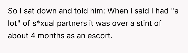 UPDATE: AITA for not telling my fiancee I used to work as an escort?