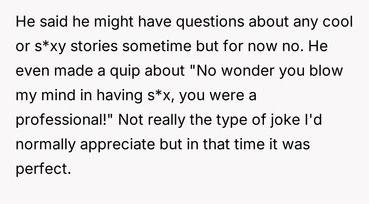 As renowned relationship therapist Esther Perel states, “If we are to be fully loved for who we are, we must be willing to be fully known.” This situation illustrates the high-stakes nature of complete relational transparency, where the potential pain of disclosure is weighed against the corrosive effect of maintaining a significant secret. The OP's initial hesitation, including the thought of a manipulative final sexual encounter before disclosure, highlights a powerful internal struggle rooted in shame and the fear of abandonment. The fiancé's reaction—moving from initial surprise to acceptance, even making a lighthearted joke—demonstrates a mature framework for navigating disclosures that challenge prior assumptions. His focus on the present relationship ('what you did didn't stop you from being the woman I fell in love with') suggests a secure attachment style where current reality overrides historical actions. The OP acted appropriately by prioritizing honesty over maintaining a comfortable but dishonest status quo, especially before marriage. A constructive recommendation for handling such profound disclosures is to initiate the conversation when sober and grounded, focusing on the emotional need for honesty rather than anticipating the partner's specific reaction. Future conversations should involve setting boundaries around the topic—agreeing on what is relevant moving forward versus what is strictly historical detail—to prevent the past from becoming a constant point of discussion.