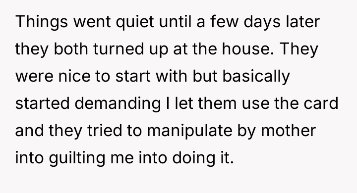 AITA for laughing in my brother and SIL’s faces when they demanded to use my credit card?