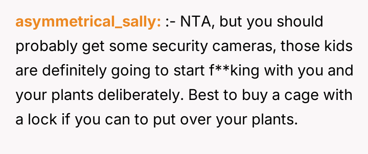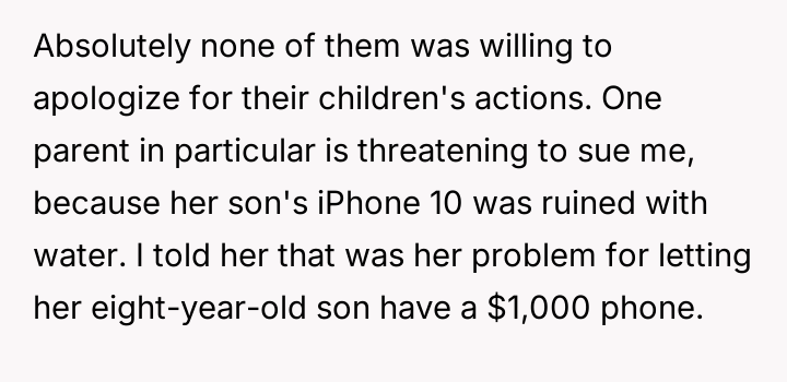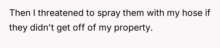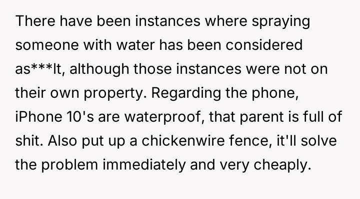 As renowned researcher Dr. Brené Brown explains, “Boundaries are the distance at which I can love you and me simultaneously.” This situation highlights a significant breakdown in personal boundaries and community expectations. The OP has established a clear boundary around their property and the fruits of their labor (300 plants, substantial jelly production) through their actions of cultivation and donation. When neighborhood children repeatedly violate this boundary, resulting in significant property damage (50+ plants smashed), the OP's frustration is understandable. Their initial escalation to threatening police involvement, followed by using the garden hose, represents an attempt to enforce a boundary when passive deterrence failed. However, using water force, even if intended to merely chase them away, is an aggressive physical response that invites counter-escalation, as seen with the parents' reaction and the threat of a lawsuit over a damaged phone. The parents' refusal to apologize demonstrates a failure to acknowledge their children’s trespass and negligence, shifting blame entirely onto the property owner. While the OP's frustration with the damaged iPhone is understandable—a child having an expensive device while engaging in vandalism is questionable parenting—retaliating or dismissing property damage claims without addressing the initial trespass is unproductive. A constructive recommendation is for the OP to immediately cease aggressive physical responses. Future incidents should be documented with video evidence, and the next step should involve formal, documented communication with all parents regarding trespass and liability, potentially involving formal neighborhood mediation or non-emergency police consultation regarding property crime, rather than direct confrontation. The use of force, even seemingly minor force like spraying water, moves the situation from property defense to potential assault in the eyes of the law and the complaining parents, making the OP vulnerable to liability, regardless of the children's initial wrongdoing.