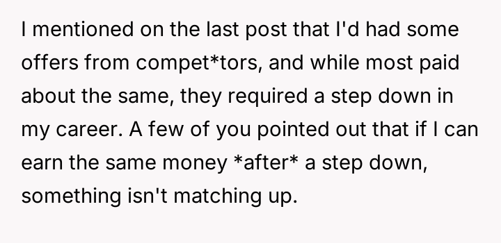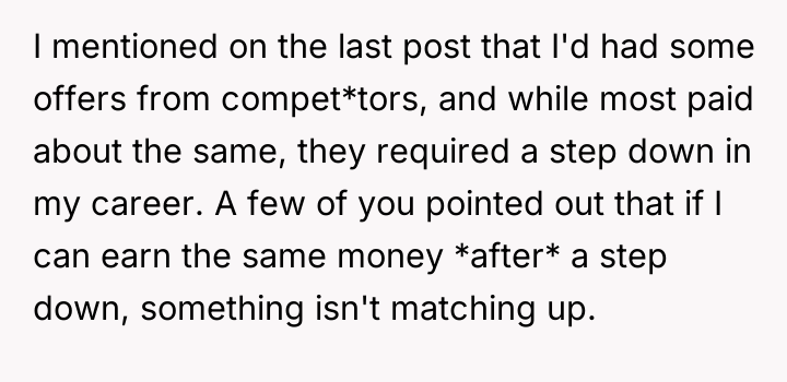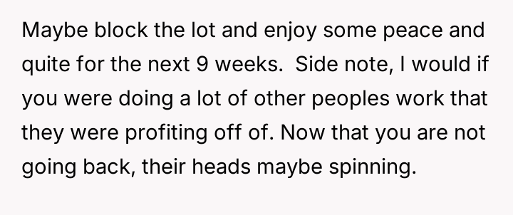 Empowered by newfound clarity and the support of others, they took a bold step toward change. With formal offers in hand promising better pay and healthier hours, the protagonist embraced the courage to break free from toxic expectations and reclaim control over their career and life.