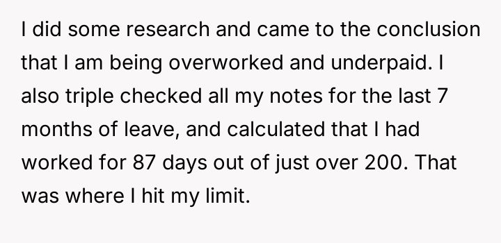 Trapped in a cycle of relentless work and diminishing returns, the protagonist faced a harsh realization: they were overworked, underpaid, and undervalued. Despite loyalty to family ties, the imbalance between effort and reward became impossible to ignore, pushing them to reexamine their worth and future.