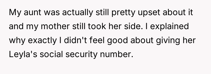 UPDATE: AITA for refusing to give my newborn’s social security number to my aunt.
