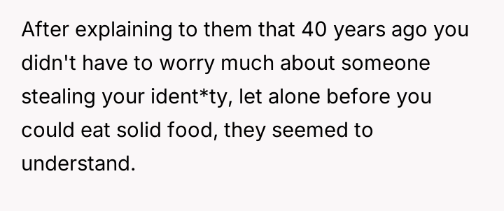 Given that modern financial risks now outweigh historical norms, was the OP correct to stand firm on protecting the child's Social Security Number, even at the cost of temporary family friction, or should they have relied more heavily on familial trust?