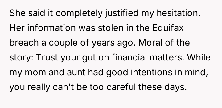 The original poster (OP) faced significant conflict when attempting to protect their newborn's sensitive financial information from well-meaning relatives. Despite initial resistance and arguments based on past traditions, the situation forced a reevaluation when the mother experienced actual identity theft, validating the OP's precautionary stance.