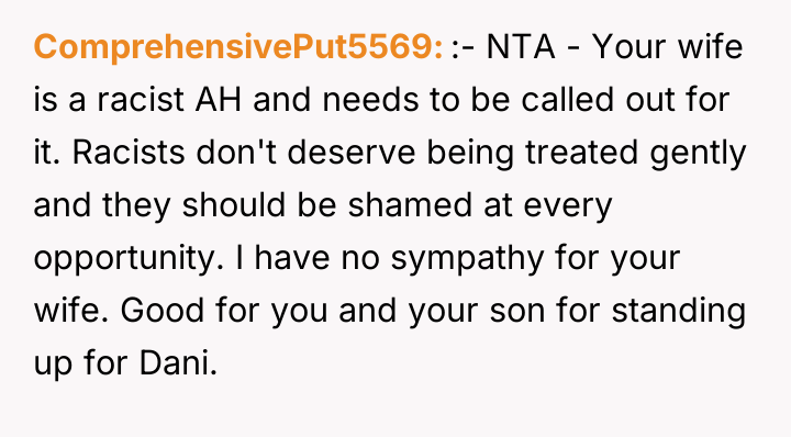 The fundamental question remains whether the OP crossed a line by responding to his wife's alleged racism with equally harsh personal attacks, or if such a strong reaction was necessary to defend Dani and establish a boundary. Readers must weigh the justification for confronting prejudice against the impact of the delivery on a 30-year marriage.