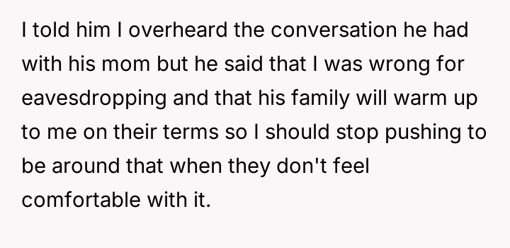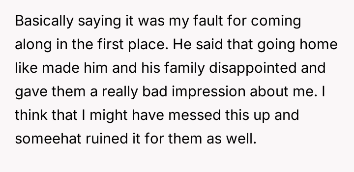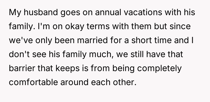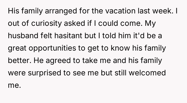 AITA for going home after I overheard my husband say he didn't want to bring me with him to his family vacation?