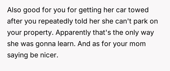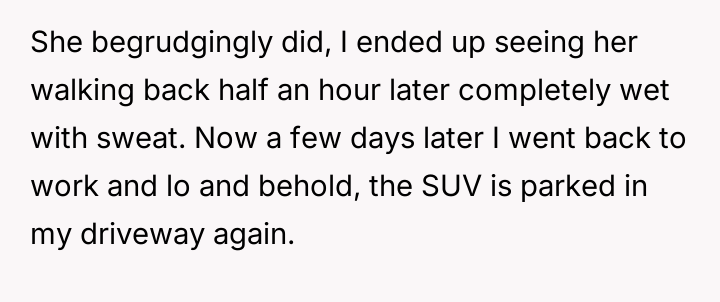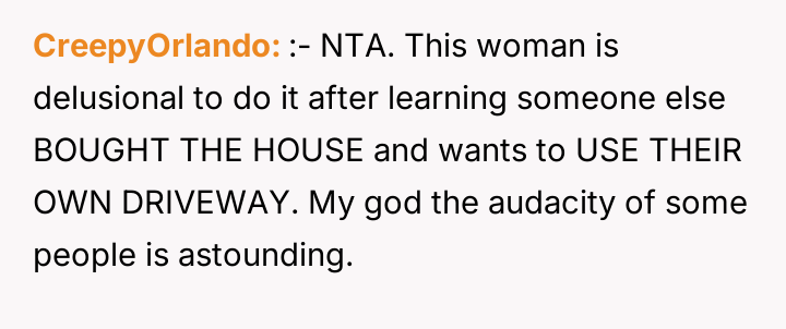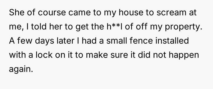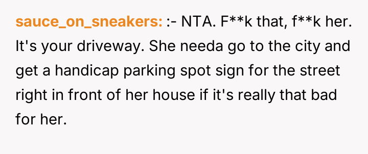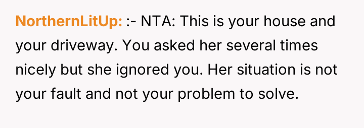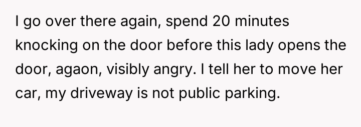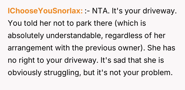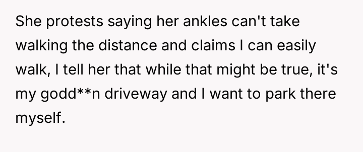 The original poster (OP) established clear boundaries regarding their private property after discovering a neighbor was persistently using their driveway without permission, leading to conflict and emotional distress for both parties.