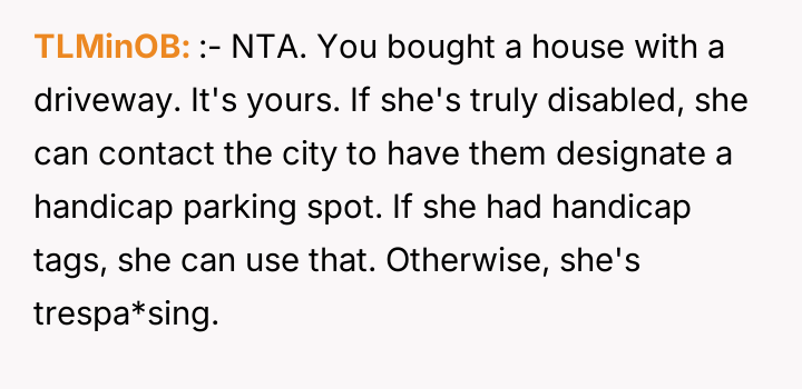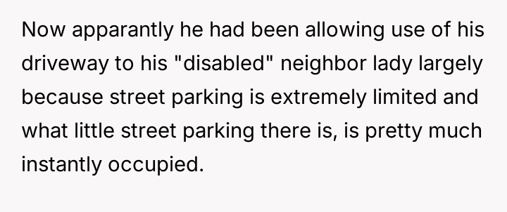 AITA for not allowing my "disabled" neighbor to park in my driveway and getting her car towed, despite the previous owner allowing it?