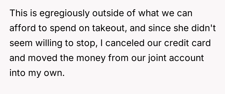 Update: I cut my wife off from our finances because she wouldn’t stop ordering takeout