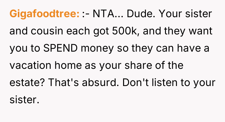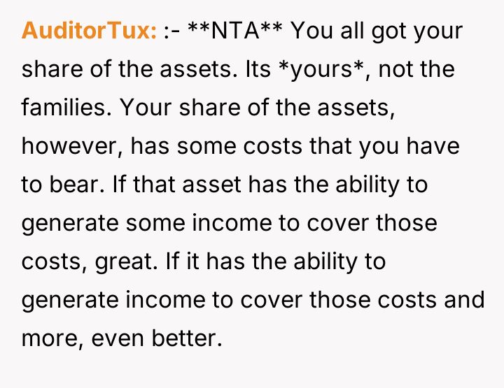 Given the sister's emotional accusations versus the OP's financial reality regarding the inherited asset, is the OP justified in treating the beach house as an income-generating property, or should they prioritize familial harmony and the sister's emotional attachment over the property's financial viability?