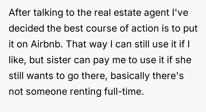 AITA for turning the home I inherited into an Airbnb? My sister thought it would be a “family home” forever.