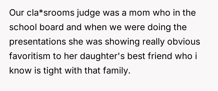 In the charged atmosphere of a high school cla*sroom, where dreams of scholarships and futures hung in the balance, a quiet injustice unfolded. The promise of fair judgment was tainted by favoritism, as a community judge’s biased attention overshadowed genuine effort and integrity. The weight of this partiality pressed heavily on those who dared to compete honestly, dimming the light of true merit.
