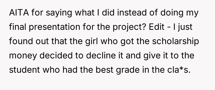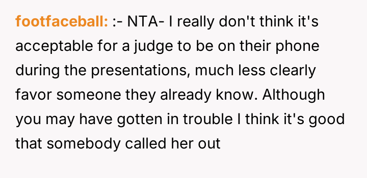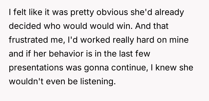 AITA for telling the judge of a scholarship compet*tion that if she already knew who she wanted to win, to cut the c**p and just let us all go home?